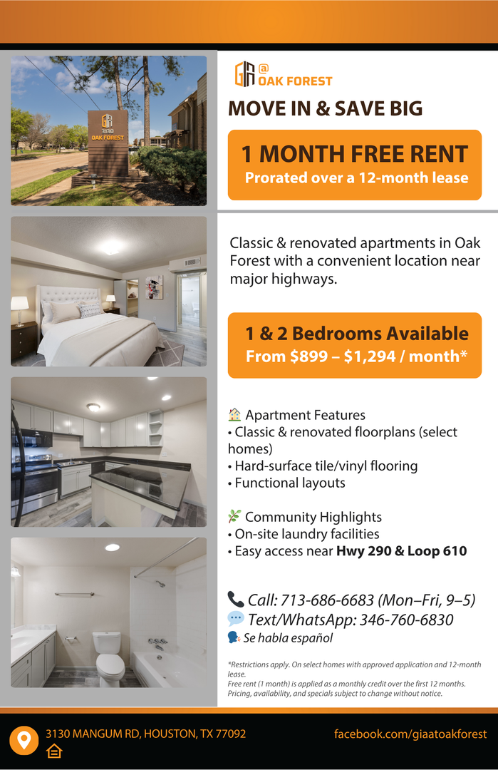 Welcome to Gia @ Oak Forest, home to one of Houston’s finest neighborhoods!