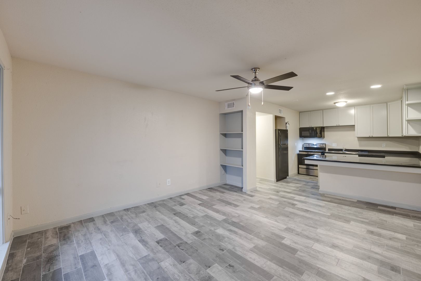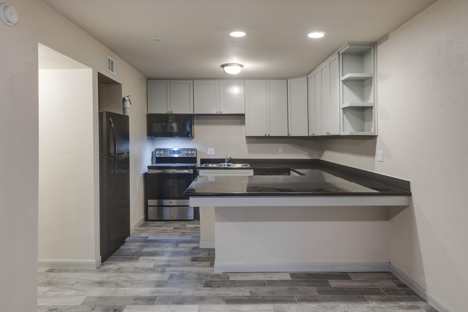 The Unit: You will love our remodeled unit which is furnished with black granite dining island/kitchen countertop, new cabinets, black or stainless steel appliances with microwave, luxury faux-wood or ceramic flooring, and ceiling fans.