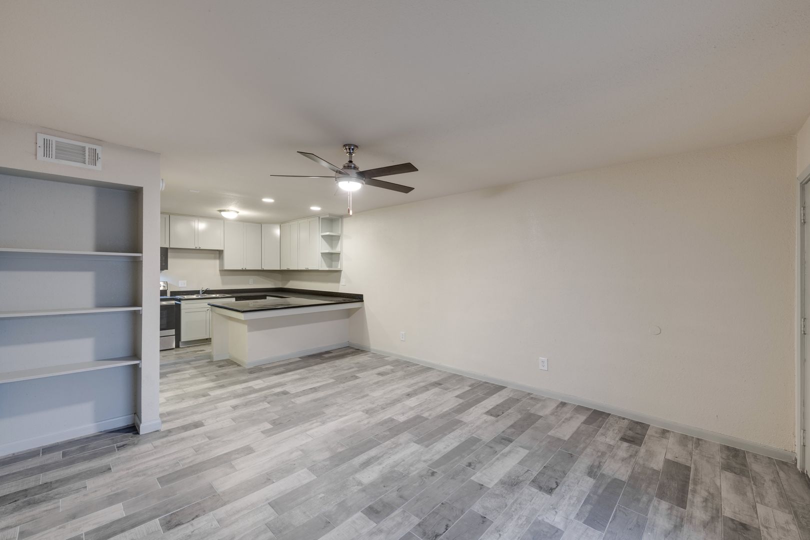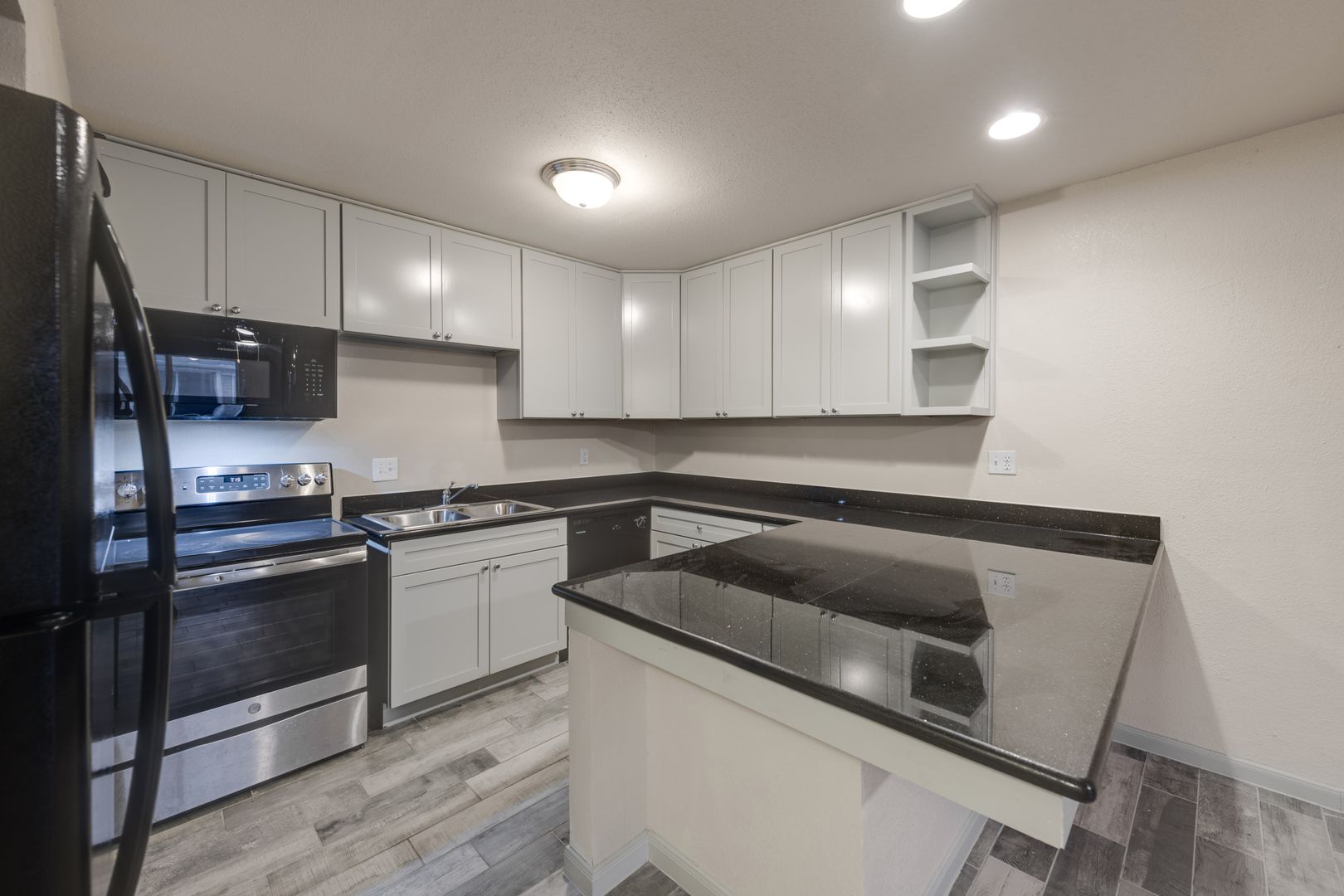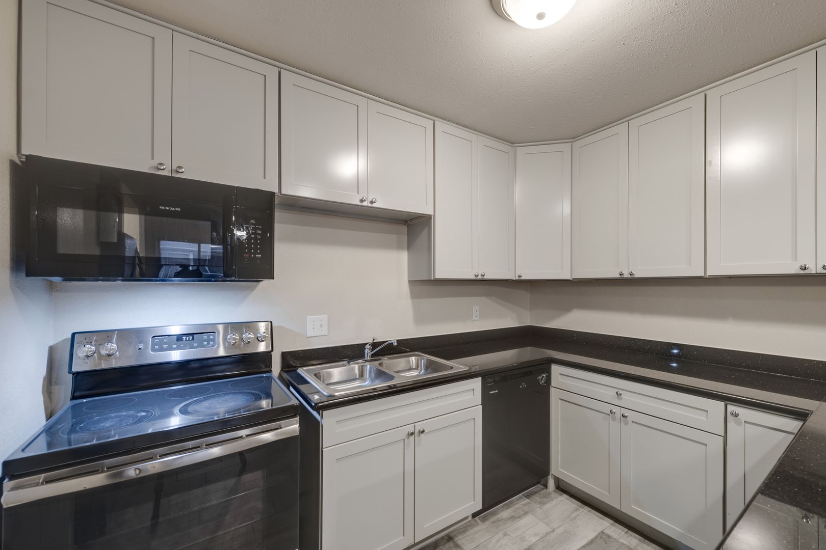 The Unit: You will love our remodeled unit which is furnished with black granite dining island/kitchen countertop, new cabinets, black or stainless steel appliances with microwave, luxury faux-wood or ceramic flooring, and ceiling fans.