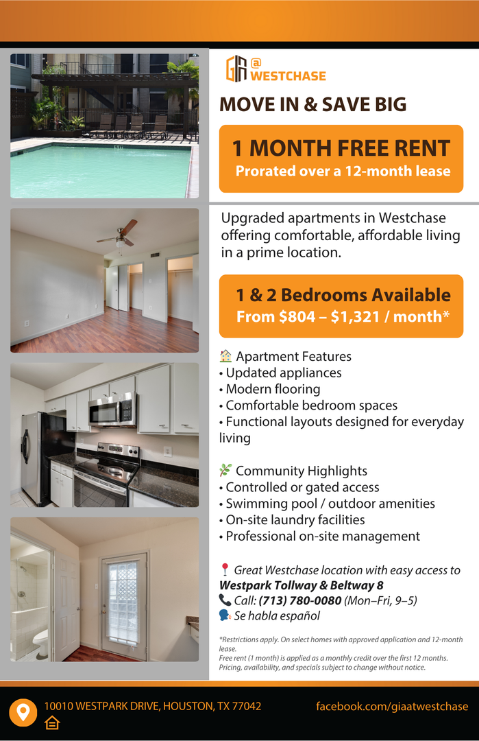 Gia @ Westchase, we are committed to providing our tenants with excellent services and creating a friendly inclusive community!